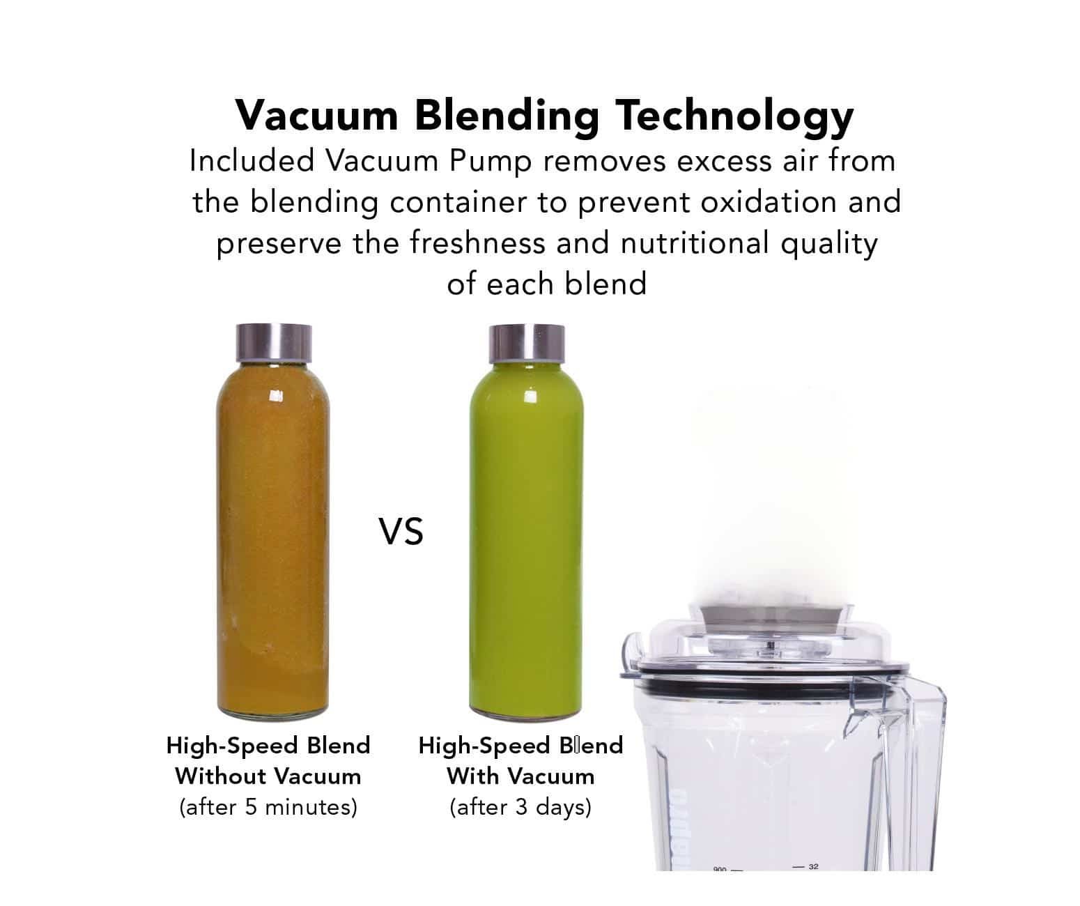 - Vacuum Blender has Anti-oxidation Function, preventing ingredients from oxidizing; preserving the colors, flavors and nutrients as close to nature.